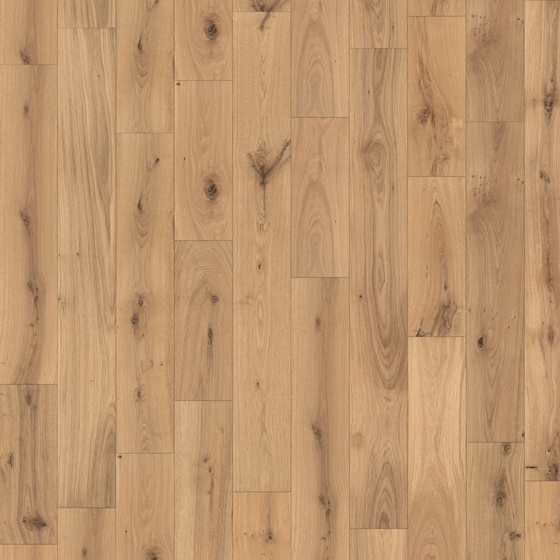 Parquet massif en chêne teinté, huilé ou verni selon les teintes. Avec 4 chanfreins. Rainure et languette. Pose collée obligatoire.