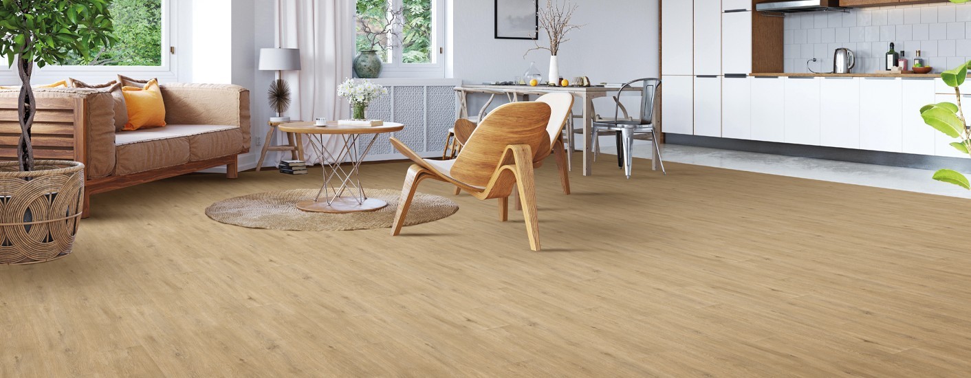 Revêtement de sols PVC en lames et en dalles selon les décors.